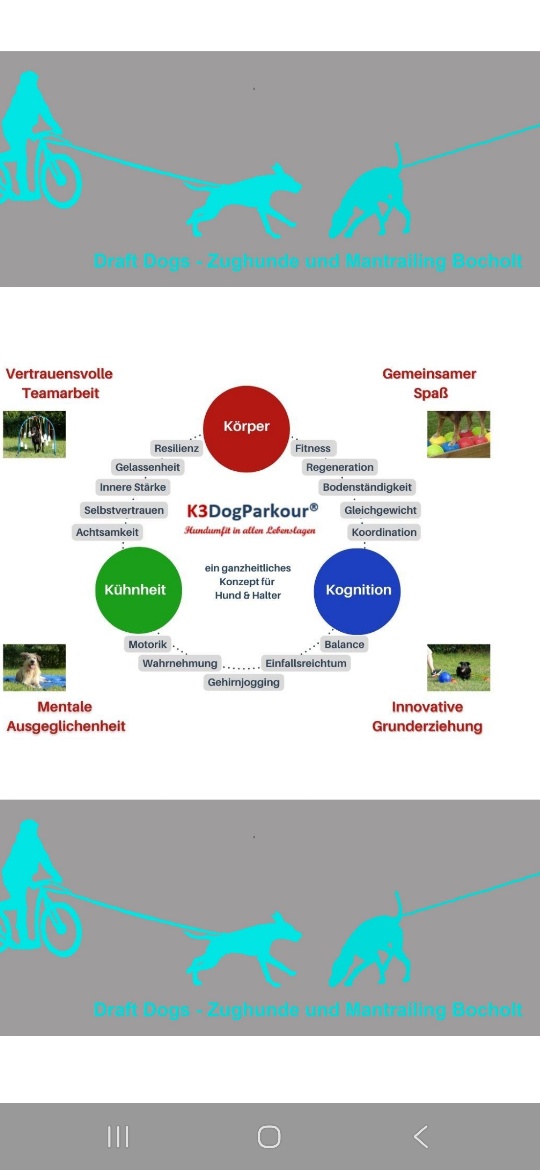 Mantrailing, Zughundesport und K3DogParkour®. Gelegentlich biete ich auch Alltagskurse an.